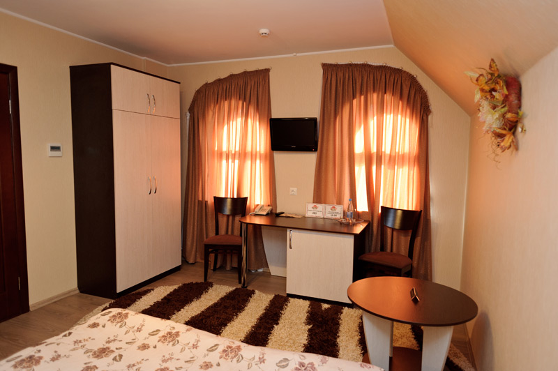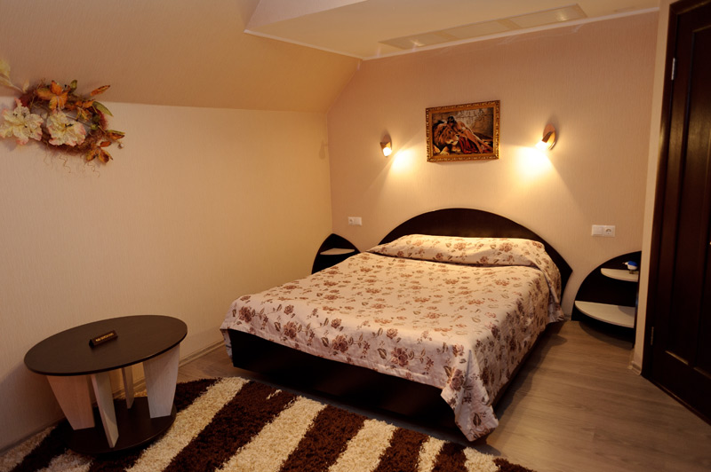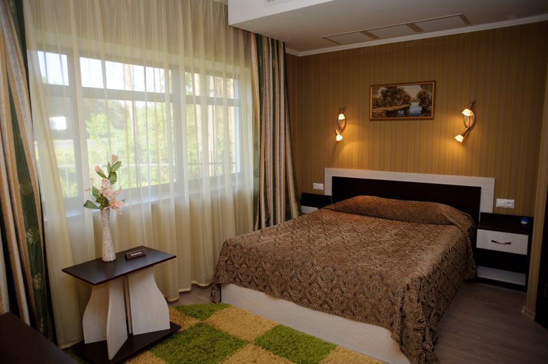 Затишні готельні номери класу «Стандарт» обладнані усім необхідним для гарного відпочинку у Полтаві. Обравши будь-яку кімнату на першому або другому поверсі одного з казкових лісових будиночків, ви зможете зануритися у світ комфорта, забути про метушню та дозволити собі розслабитися максимально добре.