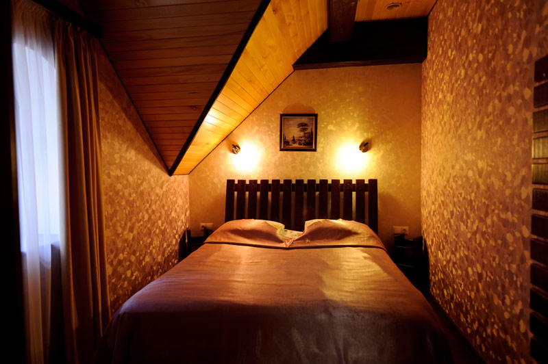 Баня Ніщо так не сприяє зняттю напруги та втоми, як хороша баня. У славній баньці, обладнаній в усамітненому лісному котеджі, ви зможете від душі попаритися та зануритися у прохолодний глибокий басейн на першому поверсі, а також насолодитися грою в більярд або просто відпочити у спальній кімнаті на другому. Банна зала готелю виконана у античному стилі, що вже само по собі створює світле відчуття легкості та свіжості. Поєднання дерев’яного оздоблення, приглушене світло та пастельні тона в оформленні другого поверху сприяє приємній грі або душевному відпочинку у Полтаві. Гостям бані надається обслуговування ресторана та послуги професійних банщиків.